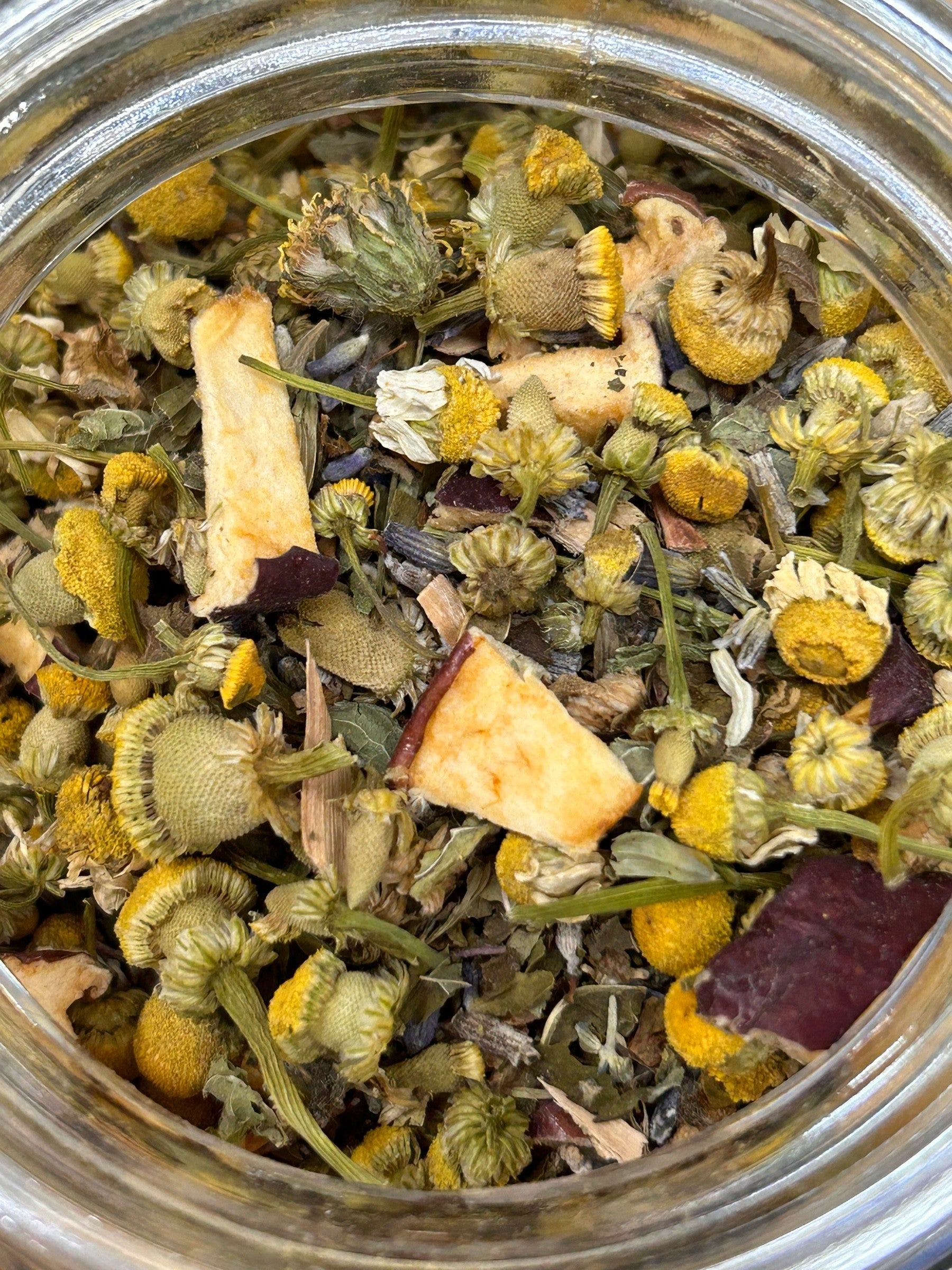 Calm Current is a thoughtfully blended herbal tea designed to help you slow down and reconnect with a sense of ease. Featuring a harmonious mix of chamomile, lemon balm, lavender, peppermint, willow bark, and apple, this calming blend delivers a smooth, lightly floral cup with gentle citrus and mint notes.
