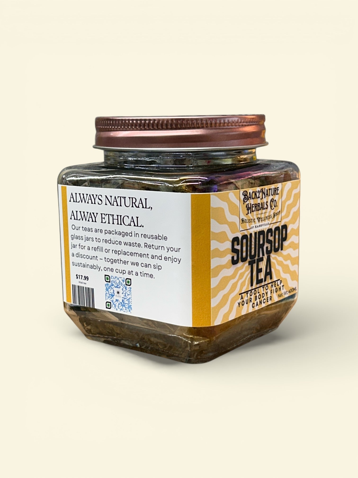 This Soursop Leaf Tea is a balanced, aromatic herbal blend created for intentional tea rituals and moments of mindful rest. Featuring wild-harvested soursop leaves paired with lemon balm, lemongrass, ginger root, and Arkansas pawpaw fruit, this blend delivers a smooth, grounding cup with gentle tropical notes.